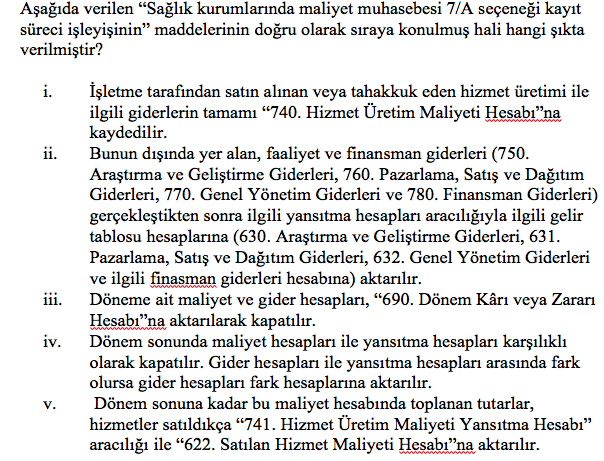 Sağlık Kurumlarında Maliyet Muhasebesi Final 19. Deneme Sınavı