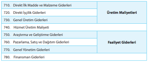 Yukarıda verilen Gider Hesapları tablosunda "Genel Üretim Giderleri" hangi numara ile gösterilmiştir?
