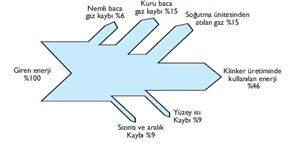 Yukarıda bir çimento fabrikası için çizilen Sankey Diyagramına göre aşağıdakilerden hangisi yanlıştır?