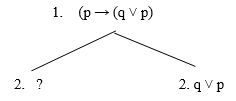 (p › (q ? p) kök önermesinin ana eklemi koşul eklemi olduğundan soru işareti yerine ~ p önermesi gelmelidir.