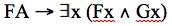 Çözümleyici çizelge yöntemiyle, ∃x (Fx → FA) önermesinin niceleme mantığında geçerli bir önerme olduğunu yukarıda verilen çizelge ile gösterilmektedir.