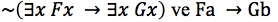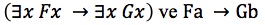 Niceleyiciler ve önerme eklemi sembolleri yerine gündelik dildeki niceleme ifadeleri ve önerme eklemleri konur. |