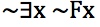 (Ǝx Gx ∧ ∀y) Fy ∧ Gy ∨ (~Fy ∧ ~Gy) |