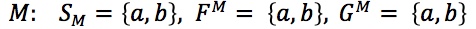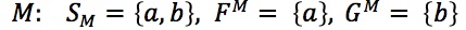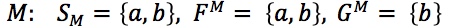 SM = {a, b}, FM = {a}, GM = {a,b}, AM = a, BM = b |