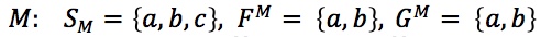 Sm= {a,b,c}, Fm = {a,b}, Gm = { } |