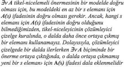 En az bir modelde doğru olan bir nicelemeli önerme, niceleme mantığında “geçerli” bir önermedir. |