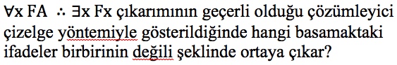 Çözümleyici çizelge ile nicelemeli bir sembolik çıkarımın geçersiz olduğunu göstermek için yapılması gereken aşağıdakilerden hangisidir?
