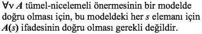 Tüm modellerde doğru olan bir nicelemeli önerme, |