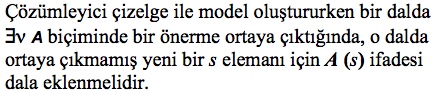 Kök noktasından başlayarak, çıkarımı oluşturan önermelerin değilleri yazarak oluşturulan çizelgede en az bir açık dal olmalıdır. |