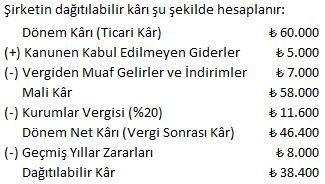 Yukarıdaki bilgilere göre işletmenin dağıtılabilir karı ne kadardır?
