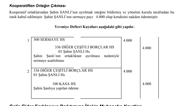 Kooperatiflerde ortaklardan birisi çıkması halinde yapılan sermaye azaltımı kaydında borç tarafına kaydedilen hesap aşağıdakilerden hangisidir?