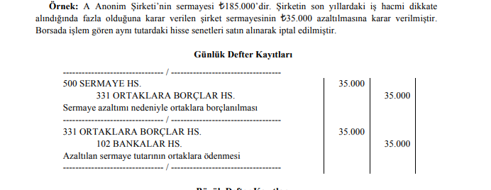 Anonim şirketlerde Sermaye azaltımı nedeniyle yapılan kayıtlarda borç tarafına yazılan hesap aşağıdakilerden hangisidir?