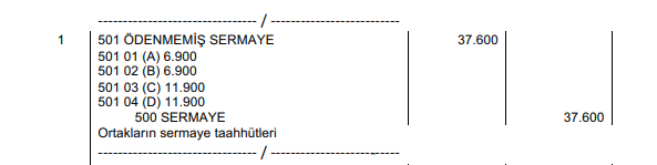 501 Ödenmemiş Sermaye |