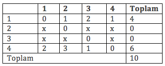 Dört düğümlü basit ağda dördüncü düğümden bire, birinci düğümden dörde giden bağlantılar arasında aşağıdaki unsurlardan hangisi bulunmaz?