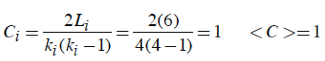 Burada Li , i düğümünün ki komşusu arasındaki bağlantı sayısını gösterir. Ci = 0 bize, i düğümünün komşuları arasında hiçbir bağlantı olmadığını; Ci = 1 bize, i düğümünün komşularının tam bir ağ oluşturarak tümünün birbiriyle bağlantı içinde olduğunu gösterir. Aynı korelasyon katsayısı gibi bu katsayı da özel durumlar dışında 0 veya 1 çıkmaz. Örneğin; Ci = 0,50 bize i düğümünün iki komşusunun bağlantı içinde olma olasılığının 0,50 olduğunu gösterir. Verilen şeklin kümelenme katsayısı şu şekilde hesaplanmaktadır: