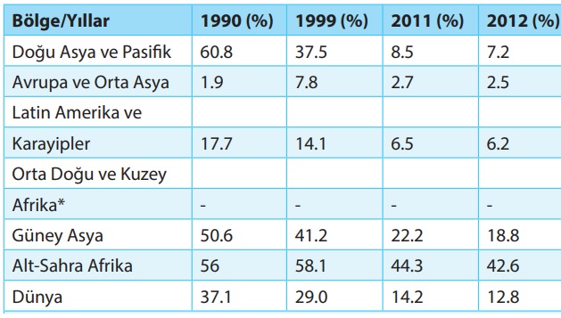En düşük yoksulluk oranı Avrupa ve Orta Asya' da görülmektedir. |