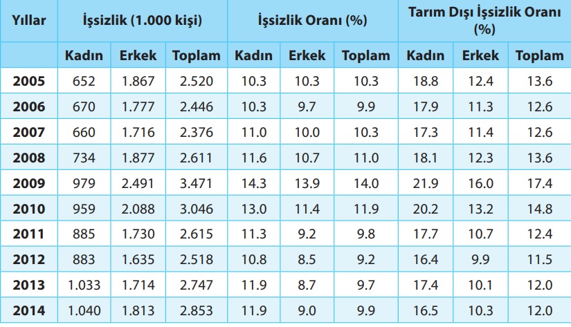 Tarım dışı işsizlik oranı 2014 yılında erkeklerde daha yüksek görülmektedir. |