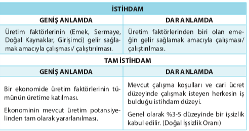 Bir ekonomide üretim faktörlerinin tümünün üretime katılması ve ekonominin mevcut üretim potansiyelinden tam olarak yararlanılması. |