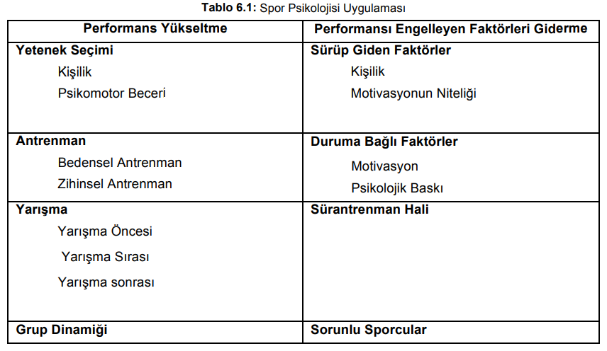 Aşağıdakilerden hangisi spor psikolojisi uygulamasında performansı engelleyen duruma faktörler arasındadır?