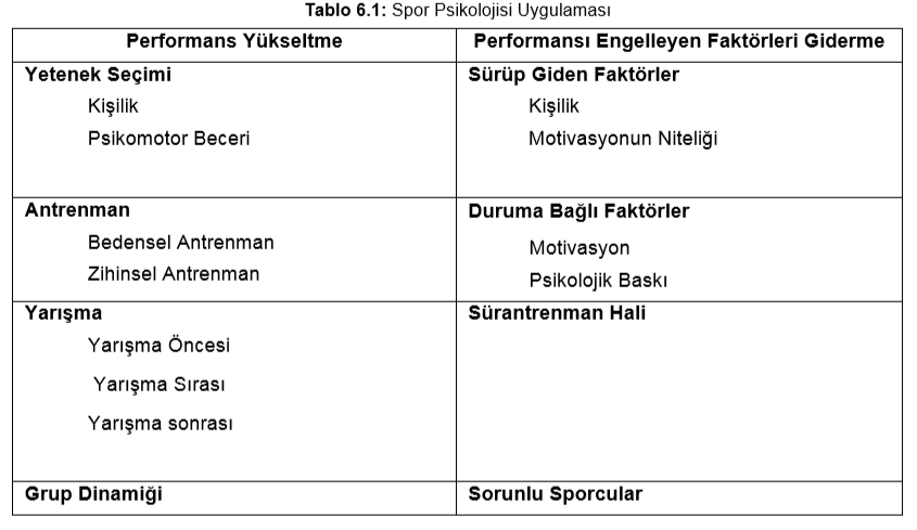 Tablo göz önüne alındığında psikomotor becerinin performans yükseltici spor psikolojisi içinde olduğu görülmektedir. Doğru cevap D'dir.