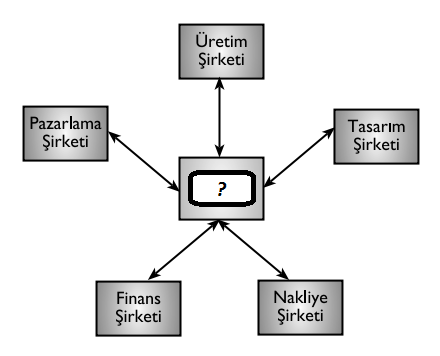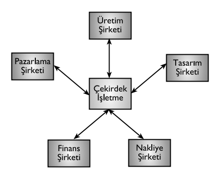 Görüldüğü gibi ortadaki kutucuğa çekirdek işletme yazıldığında sanal örgüt şeması tamamlanacaktır.