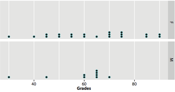 The figure above is a dot plot showing Mathematics grades in class A by gender. Which of the statements is not correct depending on the information above?