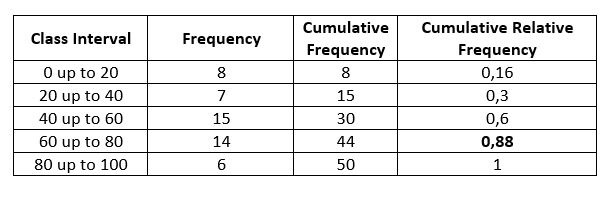 60 (10 %), 50 (15 %), 70 (25 %), 90 (30 %), 80 (40 %)