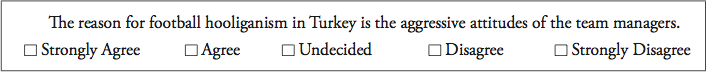 Rated responses generally include three-point, five-point, and seven-point scales. A rating scale should provide more than two options. The mostly used rating scale is five-point Likert (1932) type scale. Likert type scale can be designed in the following forms.