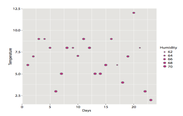 This pattern indicates that the days with high humidity tend to have temperatures at 2oC, 5oC, and 8oC.