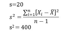 The standard deviation of the students’ performance scores data is 20. What is the variance of the data?