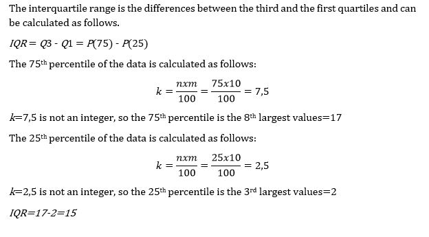 A bakery employs 10 people. The number of years’ experience that the employees of the company have is the following: 0, 0, 2, 4, 5, 8, 15, 17, 20, 24. What is the interquartile range of the data?