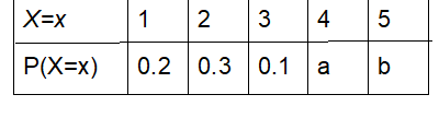 If this is a probabilty distribution than the sum of all probabilities must be equal to 1. Thus 0.2+0.3+0.1+a+b=1 which means a+b=0.4, thus b=0.4-a. Also it is given that the mean of X is equal to 2.8.