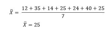 A farming company collected data about the amount of wheat (tons) sold in the last week. The data is as follows, 12, 35, 14, 25, 24, 40, 25. What is the mean of this data set?