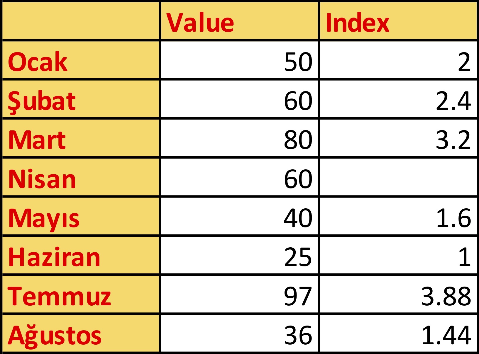 What is the simple index number for Nisan?