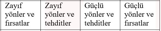 Dış fırsatları değerlendirmek üzere örgütün güçlü yönlerini kullanmasını gerektiren strateji hangisidir