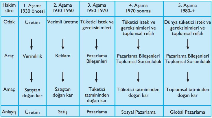 Çizelge 6.1 Pazarlama Anlayışındaki Gelişmeler