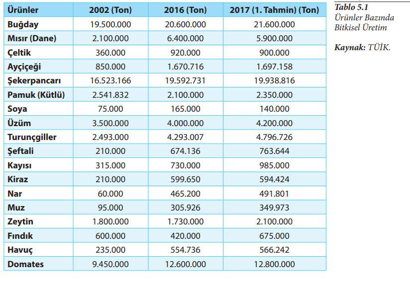 2002-2017 yılları arasında ürünler bazında bitkisel üretim incelediğinde en diğerlerine oranla en az artış aşağıdaki ürünlerin hangisinde olmuştur?