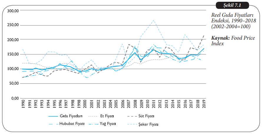 Temel gıda fiyatlarının 1990 sonrasındaki değişimi incelendiğinde hangi ürünün fiyatının daha yüksek olduğu görülmektedir?