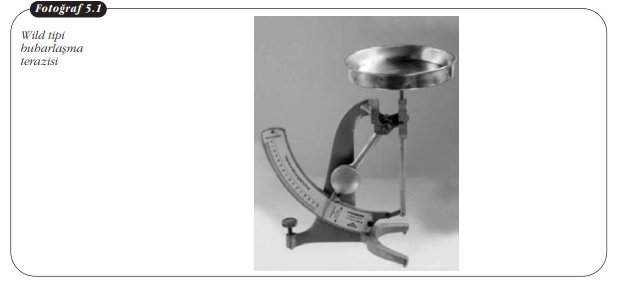 "Buharlaşma terazilerinin en uygunu Wild-buharlaşma terazisidir. Burada temel ilke buharlaşan suyun tartı ile bulunmasıdır. Su kaptan buharlaştıkça ibre kaç mm su buharlaştığını gösterir. Ölçülen değer potansiyel buharlaşmayı gösterir. Suyun bulunduğu kap ve kap yüzeyindeki aerodinamik koşullar nedeniyle, ölçme işlemleri doğal koşullarda tam uygulanamamaktadır."