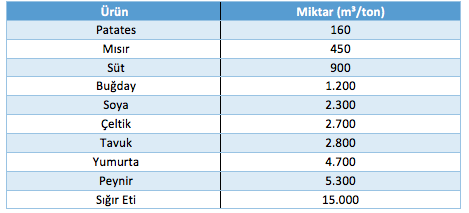 Aşağıdaki tabloda da görüldüğü üzere sığır eti elde etmek için tüketilmesi gereken su miktarı en fazla düzeydedir. Cevap E'dir.