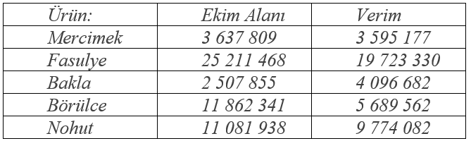 2009 yılı verilerine göre dünyada en az ekim alanına sahip olmasına rağmen üretimde en sonda yer almayan ürün aşağıdakilerden hangisidir?