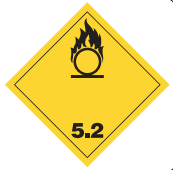 Organik peroksitler belirli bir ortam ısısında reaksiyon başlatabilen ve yüksek basınçlarda infilak edebilme özelliğine sahip olan peroksit maddelerdir. Her türlü organik peroksit tipi madde bu sınıf içerisinde tanımlanabilmektedir. Bu tür maddelerin ortam ısısı ile reaksiyona girebilmeleri, riskin azaltılması ve tehlikenin önlenebilir olması açısından ortan sıcaklığının kontrol altında tutulmasını gerektirebilmektedir. Dolayısıyla bu sınıf içerisinde yer alan ve hassas nitelikli organik peroksitler ısı kontrollü araçlarla taşınıp, soğuk hava depolarına konulabilmektedirler. Organik peroksit maddelerin etiketi aşağıdaki gibidir: