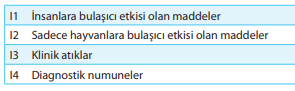 İnsan ve hayvanlar üzerinde ciddi hastalıklara sebep olabilen, doğrudan ya da dolaylı şekilde bulaşabilen çoğunlukla yeterli düzeyde tedavi ve önleyici tedbir olanaklarının bulunmadığı patolojik maddelerin bulunduğu grup Risk Grubu 4 olarak tanımlanabilmektedir. Risk Grubu 3 insan ve hayvanlarda ciddi hastalıklara neden olabilen, ancak bir kişiden diğerine bulaşma imkânı olmayan ve etkili tedavi ve yeterli önleyici tedbirlerin mevcut olduğu patolojik maddelerin bulunduğu yüksek bireysel risk ve düşük topluluk riski şeklinde ifade edilebilen alt gruptur. Hayvan ve insanlarda hastalıklara sebep olan ama ciddi bir risk içermeyen, buna karşılık enfeksiyona neden olan bu hastalıkların etkili bir şekilde tedavi edilebildiği, enfeksiyonun sınırlı şekilde yayılabildiği maddeleri içeren alt grup Risk Grubu 2 olarak tanımlanabilmektedir. Risk Grubu 1 ise insan ve hayvanlarda hastalık yaratabilme ihtimali neredeyse hiç olmayan maddelerin ter aldığı alt gruptur. Bu tür maddeler bulaşıcı madde olarak nitelendirilmemektedir. Doğru cevap C'dir.