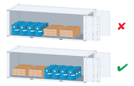 Herhangi bir tehlike durumunda varillere ulaşmak daha kolay olduğu için variller yükleme boşaltma kapısına yakın biçimde yüklenmelidir. |