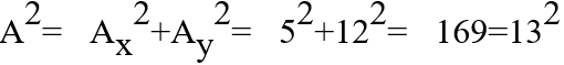 Bir A vektörünün yatay ve düşey bileşenlerinin büyüklükleri Ax=5 birim ve Ay=12 birimdir. A vektörünün büyüklüğü nedir?