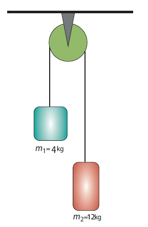 Şekilde m1 = 4kg ve m2 = 12kg kütleli iki cisim sabit makara yardımıyla birbirine bağlanmıştır. Sistem serbest bırakıldığı durumda sistemin ivmesi kaç m/s2 olur?