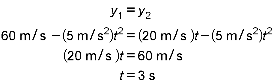 Bir top 60 m yükseklikteki binanın tepesinden ilk hızsız olarak bırakılmıştır. Aynı anda başka bir top 20 m/s hızla binanın dibinden yukarı doğru düşey olarak atılmıştır. Kaç saniye sonra karşılaşırlar? (Hava sürtünmesini ihmal ediniz, g=10 m/s2 alınız.)