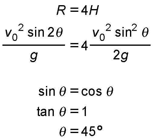 Bir cisim hangi açıyla atılırsa menzil, maksimum yüksekliğin dört katı olur? (Hava sürtünmesini ihmal ediniz.)