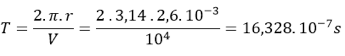 Bir proton 104 m/s hızla B= 4T değerindeki manyetik alana hız vektörü dik olacak şekilde giriyor. Çizeceği dairesel yörüngenin yarıçapı 2,6 10-3m olduğuna göre protonun periyod değeri nedir? (Protonun yükü q = 1,6.10-19C ve protonun kütlesi m = 1,67.10-27 kg)