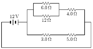 Yukarıdaki devreye bakıldığında, 12 V’luk gerilim; 3 ohm ve 5 ohm’luk dirençlerin bulunduğu koldaki potansiyel farktır. 3 ohm ve 5 ohm dirençler toplamda eşdeğer olarak 8 ohm’dur. Dolayısıyla o bölgede akım değeri ohm yasası yardımıyla I=12 volt/8 ohm=1,5 amper bulunur. Seri dirençlerin bağlı olduğu devrede herbir direncin üzerinden geçen akım aynı değerde olacağından 3 ohm ve 5 ohm’luk dirençlerin üzerinden 1,5 amper’lik akım geçmektedir.